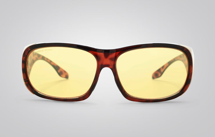 Love these glasses. They make night driving very clear. Cut the glare of those bright leds. They fit perfectly over my regular glasses.